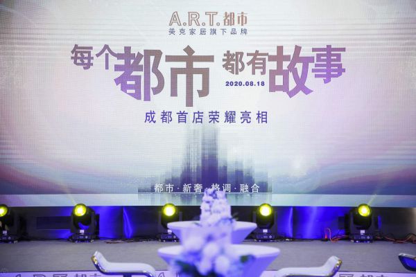 2020年8月18日,美克家居A.R.T.都市店3.0升级版在成都富森美家具商城全新面市,此次A.R.T.都市店面市诠释的主题为“每个都市,都有故事”。它代表着A.R.T.一直探索着家居理想与生活追之间的联系与平衡——在都市里,交融、汇集,充满着生机和活力,每个人都怀抱着对美好的向往,上演着色彩斑斓的故事。