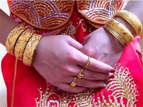 3、五金从外形款式上都会选择圆形款式,这样表示用圈把两个人紧紧绑到一定,代表婚姻稳定而又圆满。那么在敬酒时五金也会成为新娘在敬酒服上比较匹配的首饰,因此敬酒服通常为红色旗袍为主和黄金首饰非常搭配,无论是颜色还是款式都比较好搭配,但有一点要提醒在购买这些首饰时一定要去专卖店或者大型商场购买。
