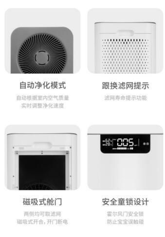 为了让用户实时感知家里的空气质量情况,它配置了精准激光监测及气态污染物监测的功能,可及时感应并显示室内温度、湿度及空气质量指标;为了避免打扰用户日常休息,它在睡眠模式下噪音可轻至33dB,如婴儿呼吸般轻盈;为了方便移动,它创新沿用了万向静音脚轮,可360°自由移动,而且是橡胶材质,移动过程中没有烦人的噪音,也不伤地板;考虑到安全问题,它在设计上特别采用了磁吸式滤网舱门,舱门打开立即断电停止工作;还有3秒童锁的技术设计,更加贴心安全,让用户没有后顾之忧。