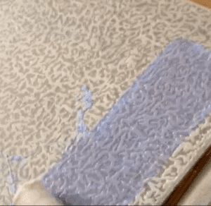 在这里要提醒大家注意的是,也是师傅屡次强调的,就是在等待背胶干燥时,要尽量控制在少尘的环境,做好防尘保护非常重要。如果背胶沾了灰尘,灰尘和瓷砖胶之间会形成隔离层,影响粘接力。