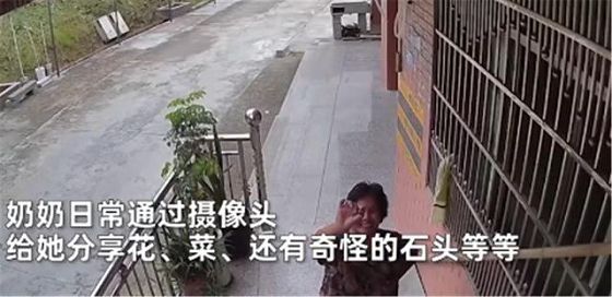 浙江丽水,女孩不放心奶奶一个人在乡下,于是在家门口装了一台摄像机。奶奶每天通过摄像机和孙女分享花、菜还有奇怪的石头。孙女让奶奶不要一个人坐在门口,奶奶说在门口,就是让你们看看我,让你们放心。