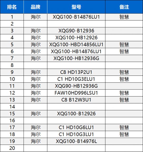 海尔洗衣机网器升级:抢占市场TOP20榜单15个席位