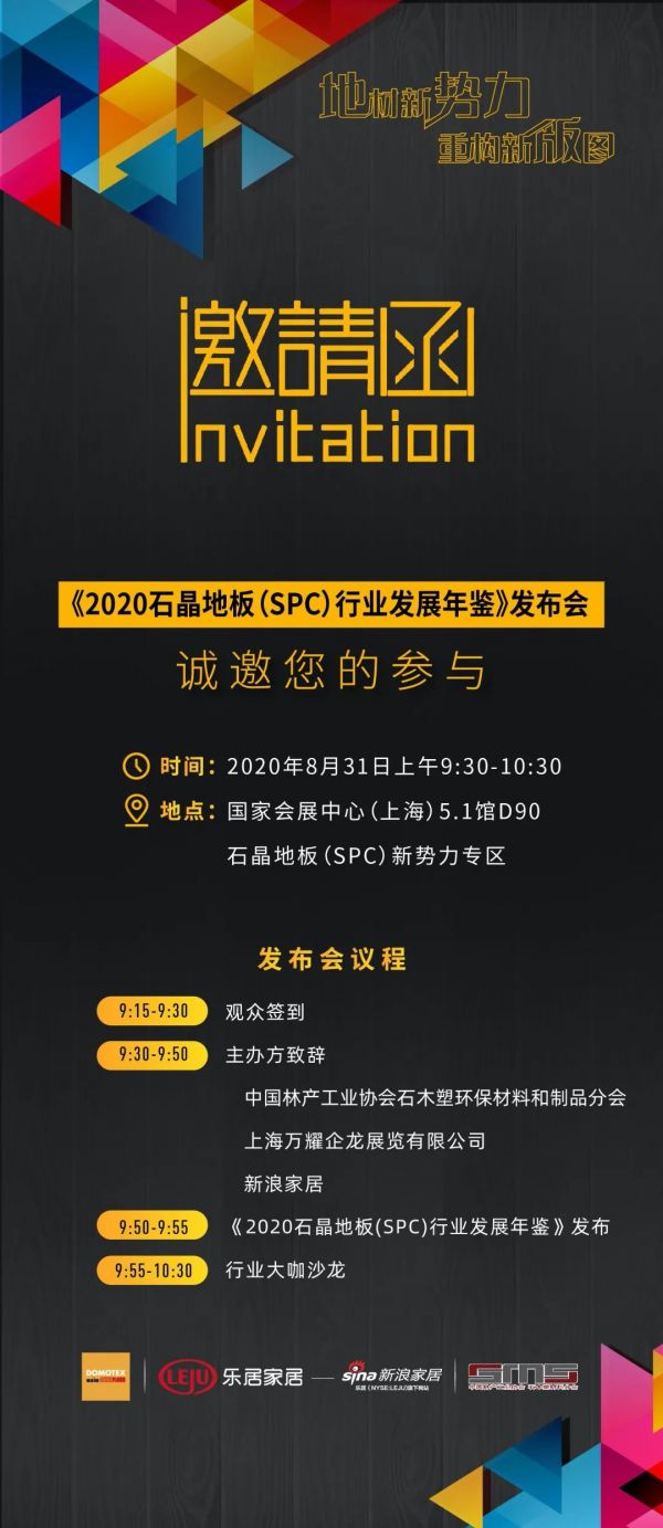 本次活动将于2020年 8.31在国家会展中心(上海)5.1馆D90石晶地板(SPC)新势力专区隆重举办,届时新浪家居等专业媒体平台将全程跟踪报道,敬请期待!