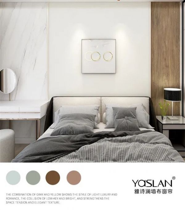 雅诗澜运用典型的简约墙布风格,以浅色系的木材营造一种温馨的感觉,精致和舒适,整体色彩给人一种安静的感觉,没有一丝夸张的色彩,让烦躁的心得以宁静。