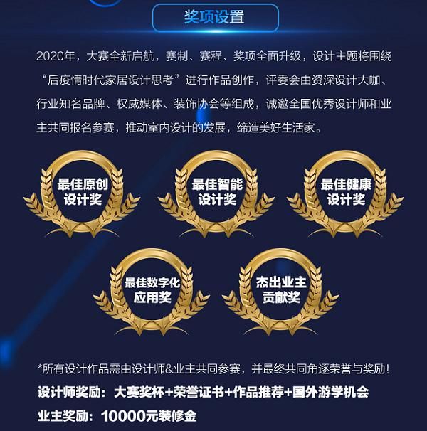 第二届“安居 · 家”室内原创设计大赛对赛制、赛程、奖项进行了全面升级。大赛引入国际化设计理念,将智能化、数字化、BIM技术与大赛相结合,设计主题围绕“后疫情时代家居设计思考”进行作品创作,与行业新锐设计师一同构建后疫情时代关于“健康、环保、生命和未来”的家居空间。此次大赛评委会由行业资深设计大咖、行业知名品牌、权威媒体、装饰协会组成。诚邀全国最优秀、最顶尖的室内设计师,与业主共同报名参与,一同推动室内设计的发展,重新定义美好家居生活!