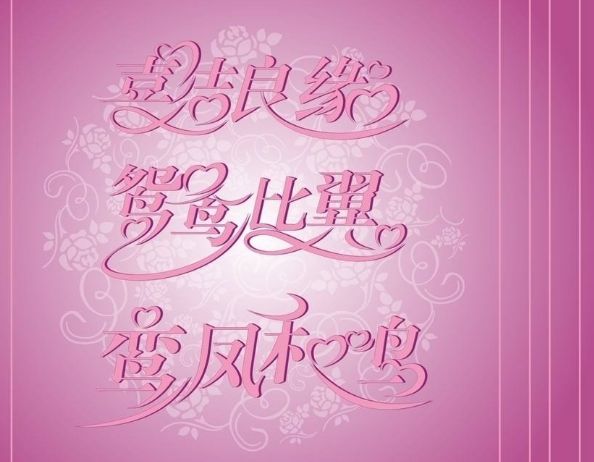 心心相印,天作之合,永结同心,同德同心,花开遍地,郎才女貌,夫唱妇随,才子佳人,新婚快乐,早生贵子,举案齐眉,百年好合,相濡以沫,相敬为宾,金童玉女,花好月圆,同甘共苦,珠联璧合,伉俪情深,凤凰于飞,情投意合。