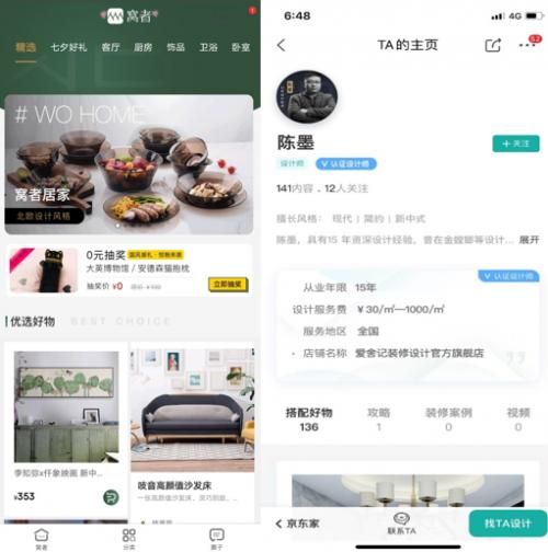 “窝者”频道作为京东居家聚焦年轻用户需求量身打造的以场景购为核心的购物频道,将在京东居家与深圳家协的合作中充当前沿流量阵地,为原创设计师和设计品牌提供栖居地。入驻“窝者”频道的原创设计师,可以通过构建个人营销阵地收获私域流量,塑造个人品牌。在展示页中,消费者可以点击查看设计师的从业经历等个人信息,并挑选心仪设计师的产品和搭配方案。设计师通过平台曝光,也可以收获评论互动和好评,从而激发创作动力。京东家具通过这一方案构建以内容为中心的“社交互动体系”,打通品牌、设计师和消费者的供需通道,实现良性循环,为以品质、颜值和设计为卖点的国际品牌和原创设计品牌创造从入驻上线到快速成长的快车道。