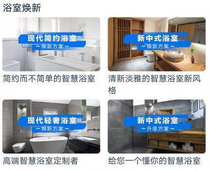 8月中旬,海尔智家APP上新浴室焕新方案,为用户提供现代简约浴室、新中式浴室、现代轻奢浴室三类不同风格的焕新方案,最快1天实现智慧升级,7天实现全屋用水整装焕新。