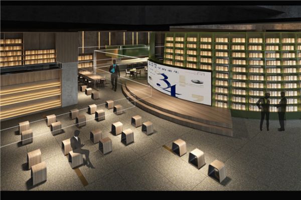 从上方俯瞰整个中心区域,面积达176平方米,高达5米的环状书塔引人瞩目,是南北东西动线、知识和美学的汇聚处。