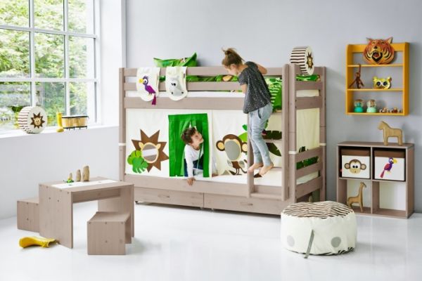 孩子们对大自然有一股天然的神往之情,动物、尘土、水和植物都深深吸引着孩子的注意力。FLEXA(芙莱莎)丛林主题纺织品鼓励孩子们玩得开心,激发他们的想象力。设计师用柔和的色调给孩子们创造了一个轻松的氛围。