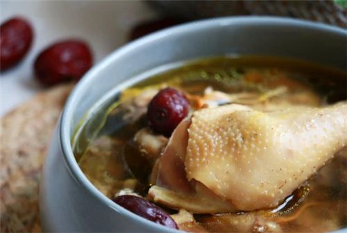 西洋参片还可以炖鸡,西洋参片十五克,一只土鸡,花胶一百克,少许枸杞,两片生姜。先将土鸡洗干净待用,在把浸发好的花胶,西洋参片,枸杞和生姜一起放到炖盅,等炖盅的水沸以后所有的材料一起放进去,在使用文火炖上两个半小时调味即可。