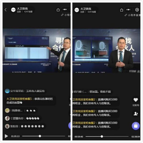 直播开始,来自全球各地的意向客户纷纷齐聚直播间,DVLK大卫洛克浴室柜携手鑫旺智业创始人、建材营销专家曾回旺老师,共同探讨如何突围市场困境,精准狙击新零售市场,全面升级产品营销的新机遇和新思维,助力事业合伙人创造财富新契机。