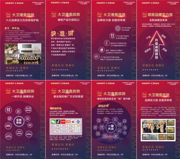 8月20日晚20:00线上直播准时开始。大卫洛克浴室柜【好浴柜 选大卫】线上招商会圆满成功!据数据统计,本次招商会2小时直播时长;累计观看人数累计4000+;点赞量2W+;线上直播间签约事业合伙人69名。DVLK大卫洛克携手鑫旺智业在浴室柜领域又插上了属于自己的胜利旗帜。感谢全国建材经销商伙伴们选择DVLK大卫洛克,实现发展共赢,共创财富之路。