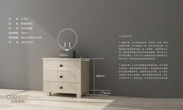 ▼三斗柜有三个抽屉,体积相对较小,比较轻便灵活。
