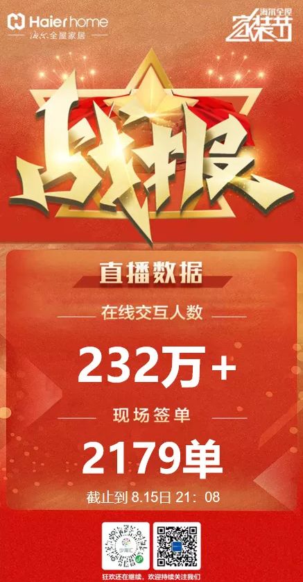 截至8月15日21点,直播在线交互达230万+人次,现场签单2179单,再度掀起家居产品线上直播带货狂潮。