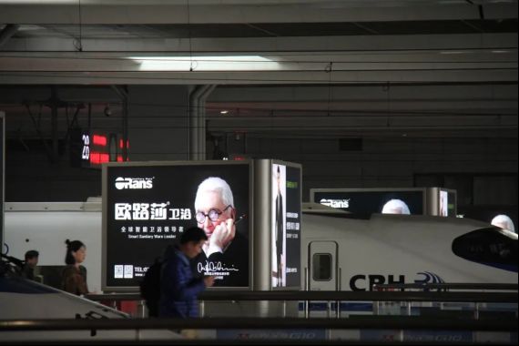 通过列车车身冠名、车厢内海报等多处融合欧路莎卫浴全新品牌形象元素,实现品牌形象从车外到车内的全方位覆盖。