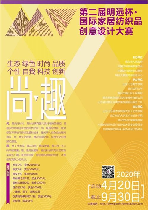 第二届明远杯·国际家居纺织品创意设计大赛由烟台市人民政府、中国纺织服装教育学会、中国纺织品进出口商会、国家级纺织服装创意设计试点园区——明远大家居时尚创意中心联合主办;山东工艺美术学院、武汉纺织大学、烟台市福山区人民政府、烟台明远创意生活科技股份有限公司、山东省民营企业高质量发展烟台服务二队共同承办。