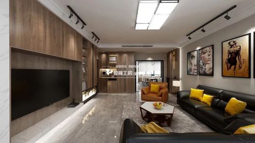 在颜色的选取上使用到木色、高级灰等中低饱和度的色彩,使之第一眼看去便有着一种干练简洁的视觉效果,用温柔又克制的语言诠释出家的温暖从容,让家如同咖啡一般醇香浓郁,又附带着满满的休闲感。