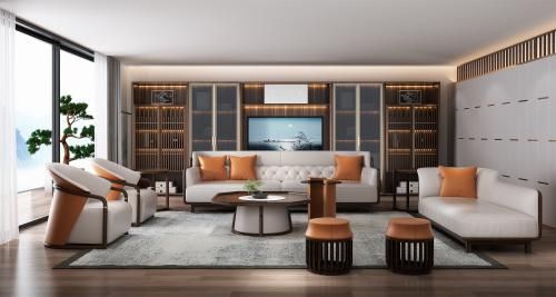 极简新中式的万嶑,设计理念从“少即是多”,以及“空故纳万境”中获得启示,融合了西方极简主义与东方传统文化的精粹,讲究留白、空、空透,为人们创造朴素而优雅、灵动且现代的家居生活环境。