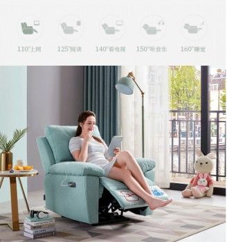 芝华仕为了回馈粉丝,联合设计了一款超性价比单椅,此款单椅具有人性化5大功能,让生活增添更多乐趣;电动一键调节,110°-160°大范围自主调控,任意角度停留,想怎么躺就怎么躺,想怎么坐就怎么坐,尽享全身伸展。