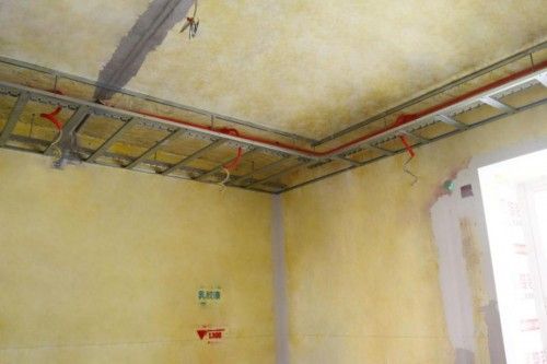 龙骨采用全轻钢龙骨材料(圣诞鸟整装工地实拍)
