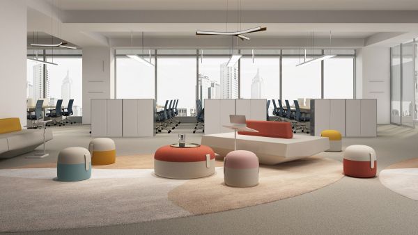Ola坐墩圆润Q弹,轻巧灵动,散发着放松、友好的气息,为办公空间中的休闲区域增添轻松柔和的感觉。