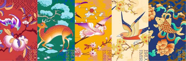作为一直守护传统手工艺的起承文化,在中国历史悠久的众多丝织品工艺中,选取最具盛名的四大名锦(云锦、壮锦、蜀锦、宋锦)和四大名绣(苏绣、湘绣、粤绣、蜀绣)进行设计再创,创造出锦绣五福的IP图腾。让锦绣走进当代生活,成为普罗大众共同分享的美好祝福。
