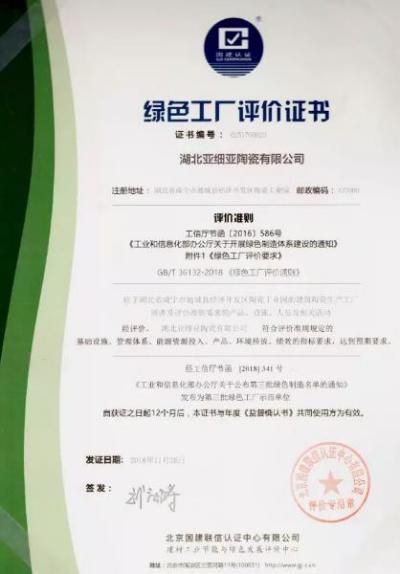 2018年,亚细亚成功获得了工信部颁发的“国家绿色工厂”称号。共同入选“国家绿色工厂”的还有蒙牛、华为、格力等知名企业 。