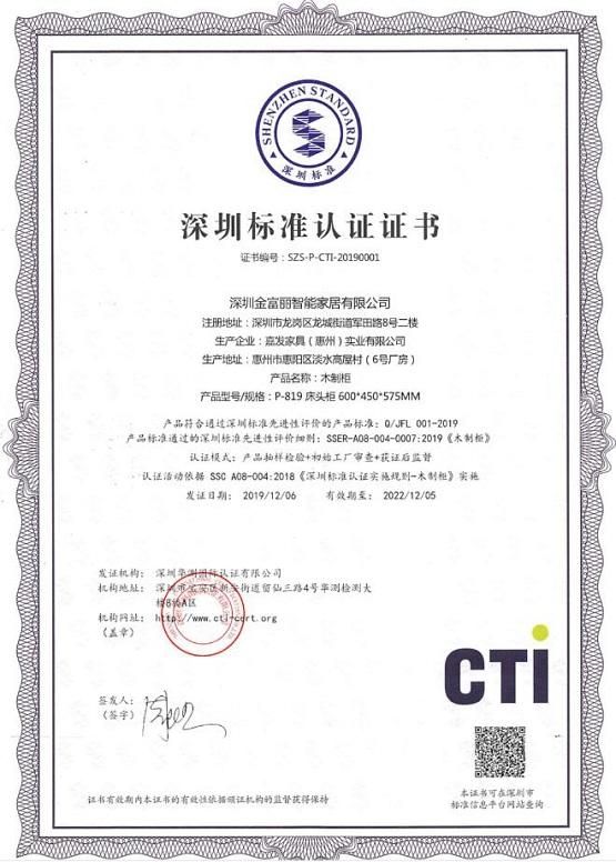 8月20日当天,由深圳标准工作领导小组办公室、深圳市市场监督管理局主办,深圳标准认证联盟、深圳市家具行业协会、赛德检测承办的“深圳标准认证”授牌仪式在深圳国际会展中心举行。金富丽家具获次殊荣。
