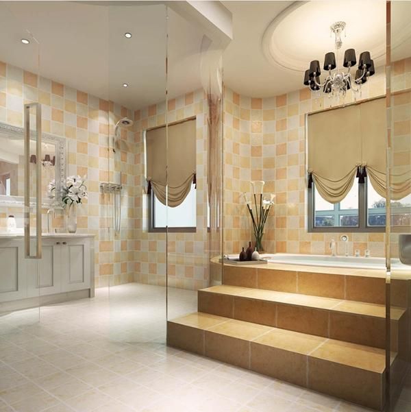 美式田园卫浴搭配着欧神诺YD801P美式乡村瓷砖,低调又不失内涵,灯光开启,将美式风格中的暖色给大家呈现了出来,给人一种满满的高级感。