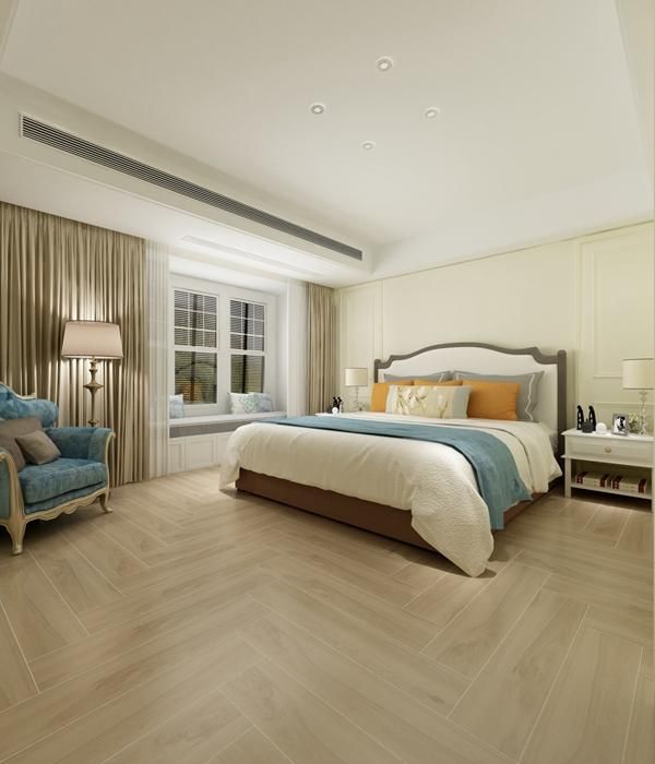美式田园卧室采用的EMK74210020卡森四代,采用高清数码喷墨印刷,逼真还原原木品相;一次成型技术,增强砖体硬度,纹理更流畅,铺贴效果更自然,尤其是树疤效果的刻画更是浑然天成,源于木而胜于木。