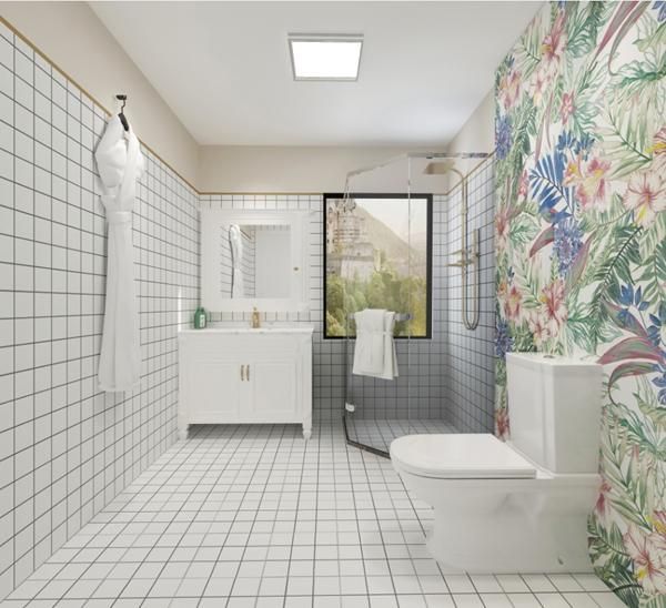 法式田园卫浴。其第一感觉就给人一种安逸,其本身设计的魅力带给人一种不同的冲击感。其采用小资格调系列MC-101M瓷砖搭配卡汀-Fico酷墙砖,文艺却又不失典雅。