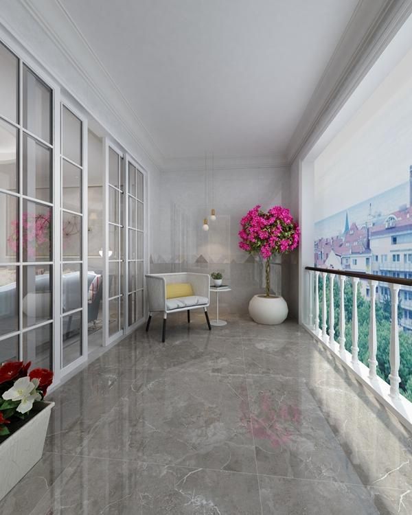 阳台采用欧神诺SKL10390S罗马灰,其本身美丽的大理石花纹,搭配精美的家居和配饰,给人一种简单却又不失奢华的美感。这也是每个女孩子心目中的大房子与大城堡吧。