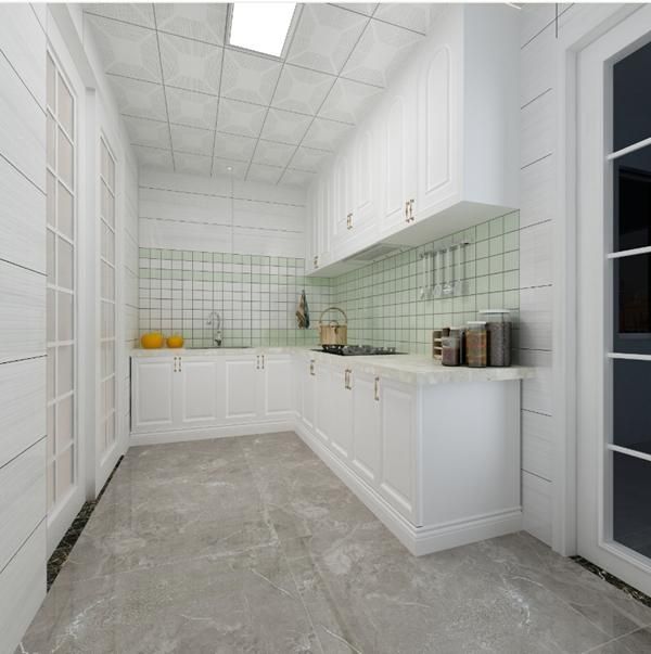 美式田园厨房第一眼的感觉是比较整洁,对于强迫症分类狂是一个惊喜,其搭配墙砖MC-110M小资格调系列,配上一些绿色植物,满满的大自然气息。地面砖采用YL7002BD玛歌庄园,其色调搭配绿色,是厨房田园装修的不错选择。