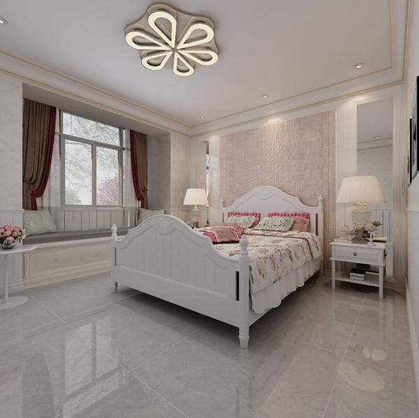 法式田园卧室给我的第一感觉就是温馨与美,其本身的白搭配墙砖的粉,满满的少女感与爱意,这或许也是设计师为了体现法式浪漫吧。其地面砖采用的是ELS13890S苏格三代,墙砖采用的是MC-205M清新隽永系列。