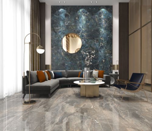 时尚个性的背景墙不仅是家中吸睛的巧妙设计,还是营造家居氛围和风格的关键,也是体现主人品位和个性的重要部分。如果你喜欢潮流、追求个性,那么安华马蒂斯蓝大理石瓷砖打造的背景墙必能狙击你的喜好。马蒂斯蓝大理石瓷砖从马蒂斯《音乐》画作中提取了宝蓝色作为灵感来源,通过蓝色的深浅交错,为整个客厅形成了艺术又灵动的气质,再搭配金属色系的家具和摆件,更能在艺术中展现沉稳又独特的尊贵。时尚独特性的背景墙,在提升整屋格调的同时,也彰显了家居主人的态度,就算休假在家,也能肆意地享受独属于自己的艺术世界。