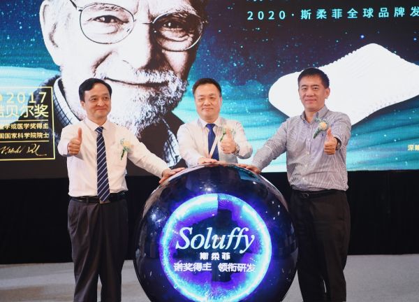 三位嘉宾致辞之后,由斯柔菲公司董事长王昌华先生、中国睡眠研究会会长黄志力先生、国际睡眠研究中心主任吴少辉博士,三人共同按下斯柔菲全球品牌发布启动球,开启了斯柔菲品牌华丽新篇章!
