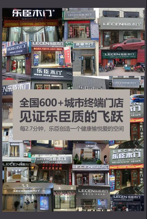 乐臣木门全国600+优秀经销商终端门店,见证乐臣质的飞跃,每2.7分钟,乐臣就创造一个健康愉悦爱的空间。