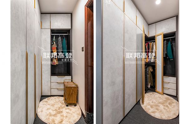 好不容易腾出来的空余房间,先以墙面为单位,根据自己生活功能需求进行框架分配;而U型环绕式的设计更有利于贯穿出流畅的换衣动线,10分钟完成换衣上妆,出门倒个垃圾也是精致满满。