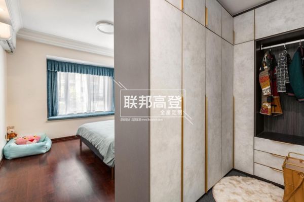 有了L型衣帽柜的贴心进驻,主卧空间一分为三,休憩、收纳、卫浴三大功能区有效间隔。忙碌的一天从慵懒阳光闯入的那一刻便开启了,选配衣服、精致上妆,源自骨子里的自信来得一气呵成。