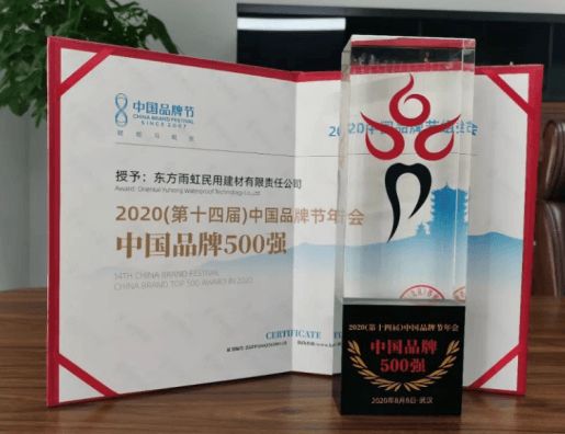 雨虹(YUHONG)作为中国品牌500强的一员,将秉承发展之心,增创新优势,升级新体验,持续加码品牌实力。持续为每一位消费者的美好生活赋能,为中国品牌的跨越腾飞贡献力量。雨虹始终坚持以为人类、为社会创造持久安全的环境为使命,在辅材领域里深耕细作,打造人类宜居新生态。