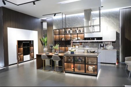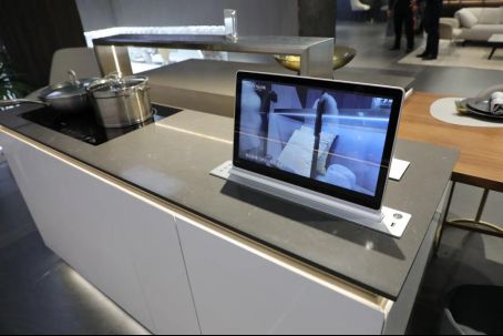 随着5G时代来临,在智慧生活理念的影响下,智能化家居风格也变得流行起来,厨房作为家居生活中不可或缺的生活场景,实现智能化操作也变得十分必要。百能家居在此次展会上还推出了橱柜智能化系统,配备智能屏,用户可以查找菜谱,便捷生活,孩子也可以学习与娱乐,增加父母与孩子之间的互动。