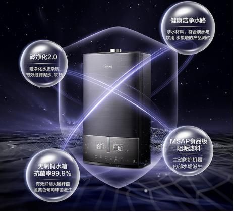 平时洗澡之后总觉得全身干燥,擦身体乳也只是一时半会儿的滋润,也有可能是水质不洁净产生的皮肤问题。美的双核磁净零冷水热水器HTL8·天泉,三步还你磁净健康水,第一步使用微孔不锈钢滤网,滤除泥沙杂质,第二步使用MSAP食品级阻垢滤料,阻垢率达91.4%,主动防护机器内部水垢滋生,第三步磁净化沐浴用水,有效去除铁锈杂质。美的双核磁净零冷水热水器所使用的的涉水材质均通过澳洲标准健康水路认证(NO.2019ZJP001747),保证健康洁净水路,同时使用磷脱氧铜水箱,有效抑制大肠杆菌和金黄色葡萄球菌滋生,抗菌率达99.9%,拒绝肌肤红疹过敏。提供磁净健康水,给肌肤温泉般的呵护力,让你净享养肤沐浴体验。