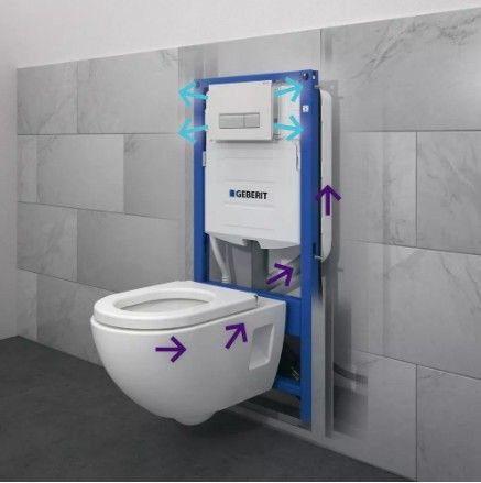 墙后排布着精心设计的给排水管道,墙前座便器上方的1M²就是吉博力卫生间专属的收纳新空间。