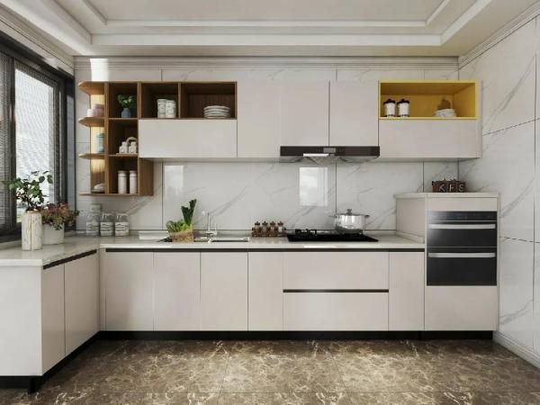 常见的橱柜造型有L型、U型、一字型,一般根据厨房的实际面积、使用者的烹饪习惯来选择。如果需要充足的空间来完成清洗、切配、调味、烹炒等环节的话,建议水槽与灶台之间间隔60-90cm,这样多人帮厨时也能有足够空间施展。