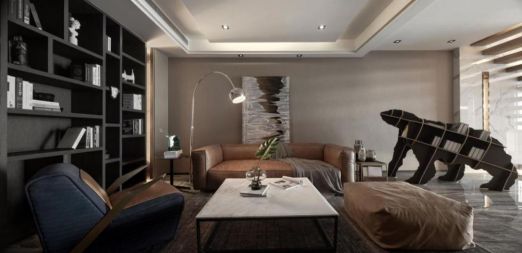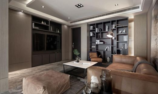 推门而入,大面积灰色空间布入眼帘,驼色皮沙发置于客厅的中央,紧凑而又合理的利用每一寸空间。