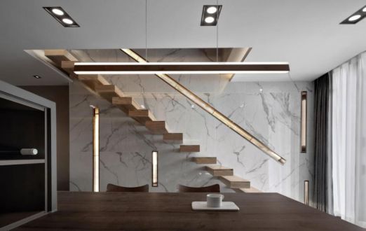 Square space type has given a lot of space. The house is planned to have three bedrooms. The open dining room and living room form their own pattern. The combination of light belt and hanging stairs without handrails is a highlight of this case. It makes the original narrow house type become transparent. On the basis of meeting the requirements of storage, the unit type is generous and neat, the moving line is reasonable, and the function and beauty are both provided.