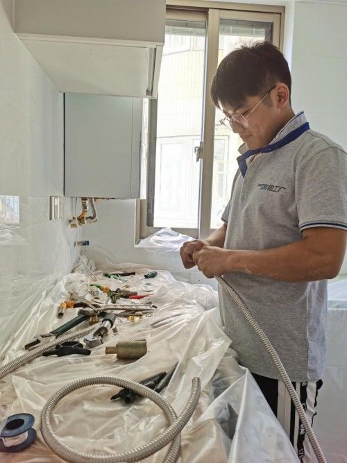 在室温达到40度的夏季,没有一丝凉风的环境中,挥动着工具一下下开槽打洞,衣服从早到晚都是汗湿的;而在湿冷彻骨的冬季,辛苦又会换一种模样出现:湿冷的房间里,手常常是冻僵的状态,但也要争分夺秒地接管道,一遍遍调试冰冷的壁挂炉……