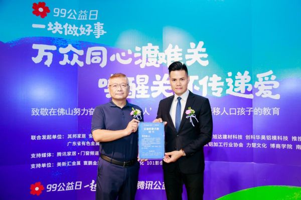 佛山市南海区社会服务联会秘书长陈敏豪、佛山市南海区慈善会副秘书长李立、佛山市其邦家居科技有限公司董事长黄东建、佛山市安格尔门窗有限公司营销副总经理吴志坚、欧迪克家居董事长冷洪熙、希美克(广州)实业有限公司市场部总监谢国雄、广东一品堂品牌营销策划有限公司董事长李万豪、佛山旭达建材科技有限公司、佛山创科华昊铝模科技有限公司副总经理沈立军、推搜新媒体副总经理、腾讯家居·门窗频道执行总裁鲍丹、广东省有色金属学会铝加工专业委员会陈明、广东省门业协会副秘书长王生华、佛山市三水区铝加工行业协会专职常务副会长麦自强、佛山市力楚文化传播有限公司董事长邝丽冰、博商佛山同学会慈善专委会会长吴德、博商佛山同学会慈善专委会秘书长朱绮华、广东省百川慈善基金会副理事长林文、广东省百川慈善基金会秘书长宋德伟等领导及15家联合发起单位代表参会。