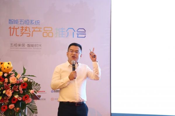 来自舒适猫产品技术部的黄老师带来了“智能五恒系统”的专业讲解。就“恒温、恒湿、恒氧、恒洁、恒静”的五恒系统向在座经销商做出了逻辑清晰、简明扼要的介绍。从技术角度分析了五恒系统将为舒适家居行业带来的创新和核心竞争力。
